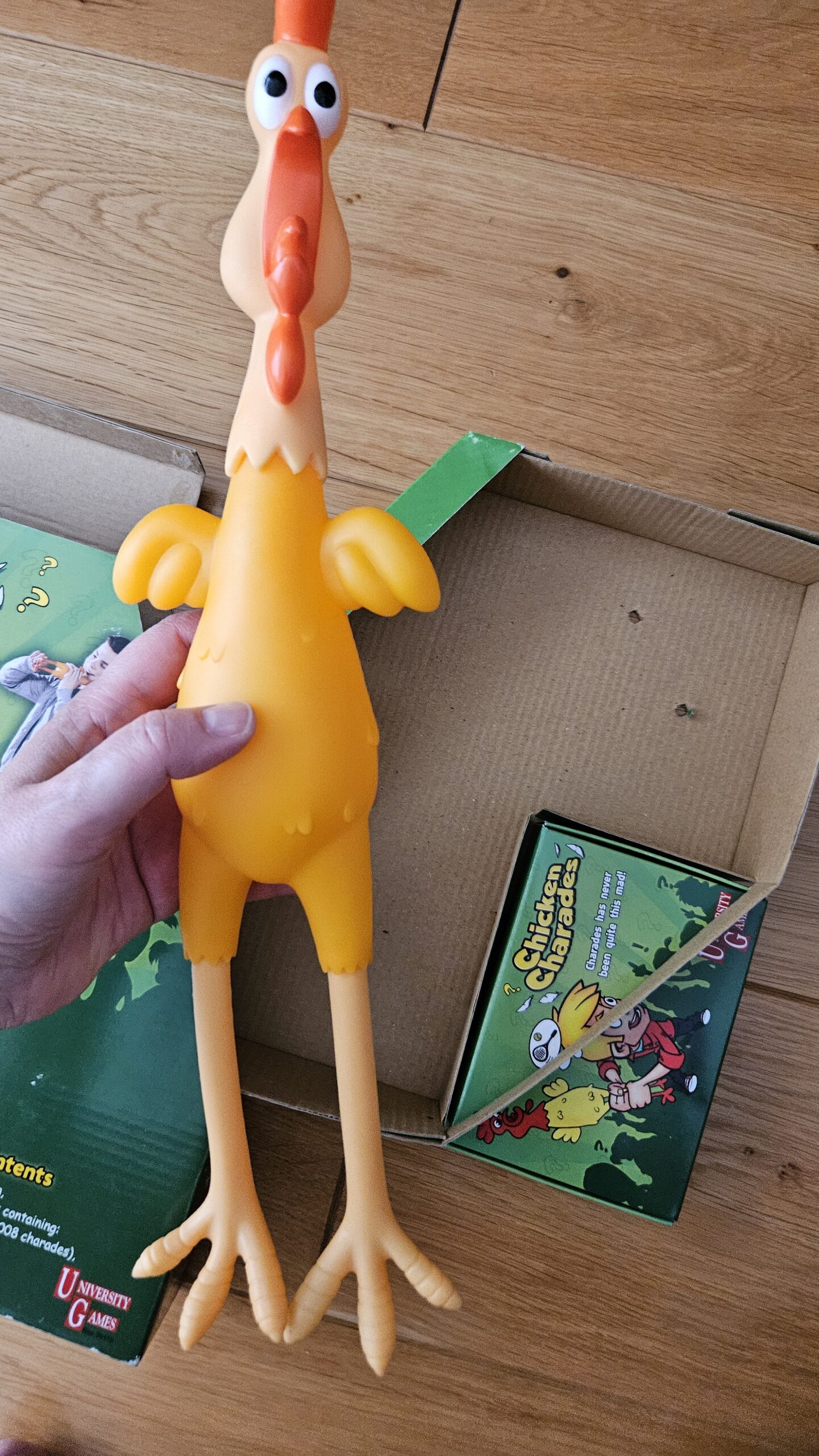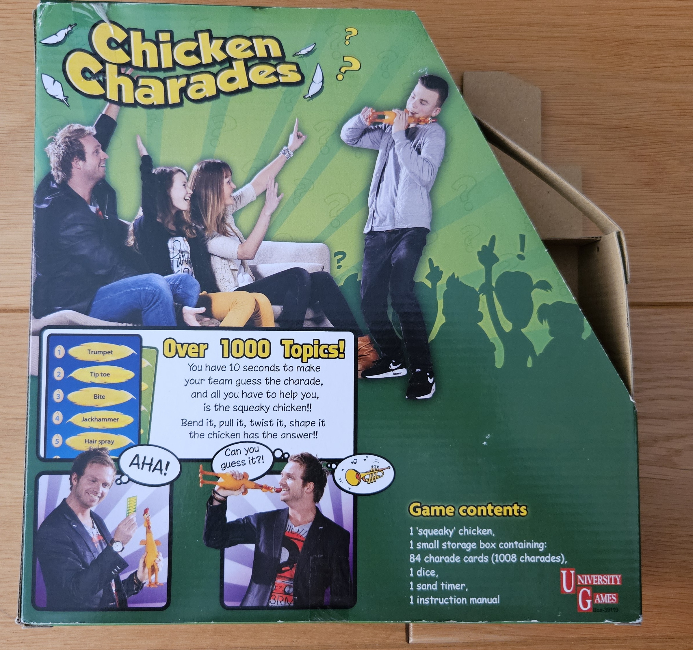 Śmieszna, ale też w edukacyjnie wartościowa gra na młodszych i chcących się pobawić starszych uczniów. Gra nie była używana, karty niewyjmowane. Niewątpliwym atutem gry jest kurczak, który piszczy. Na luźne zajęcia wprost idealna.