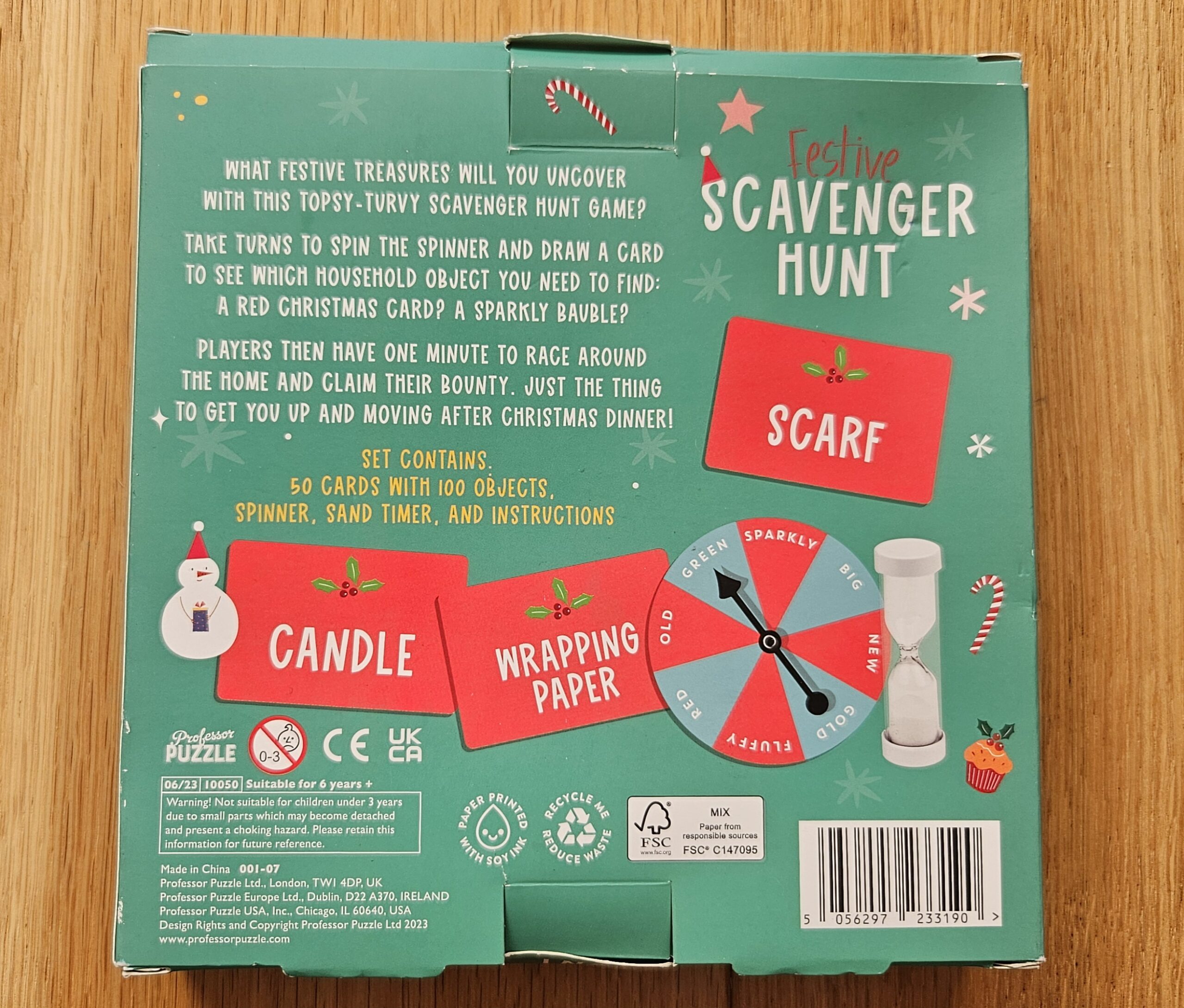 Gra nawet nie wyjmowana, w środku talia kart, świetnie opracowanych, plus spinner i timer, które wykorzystasz ze swoimi klasami na lekcjach przedświątecznych.