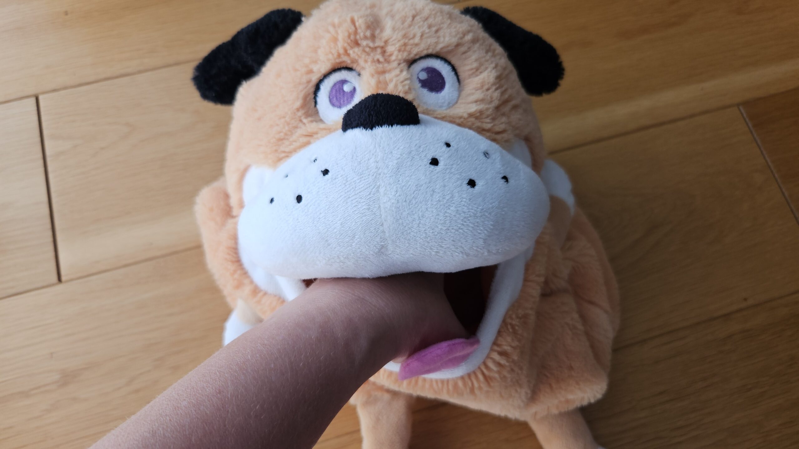 Pluszak wielofunkcyjny – rozśmiesza, możesz przez jego mordkę chować zabawki, małe kartki, literki itp. Dzieci mogą wkładać rączki i zgadywać co jest w środku. Ubarwi każdą lekcję. Rewelacyjna pomoc na zajęcia. Używany, stan bardzo dobry.
