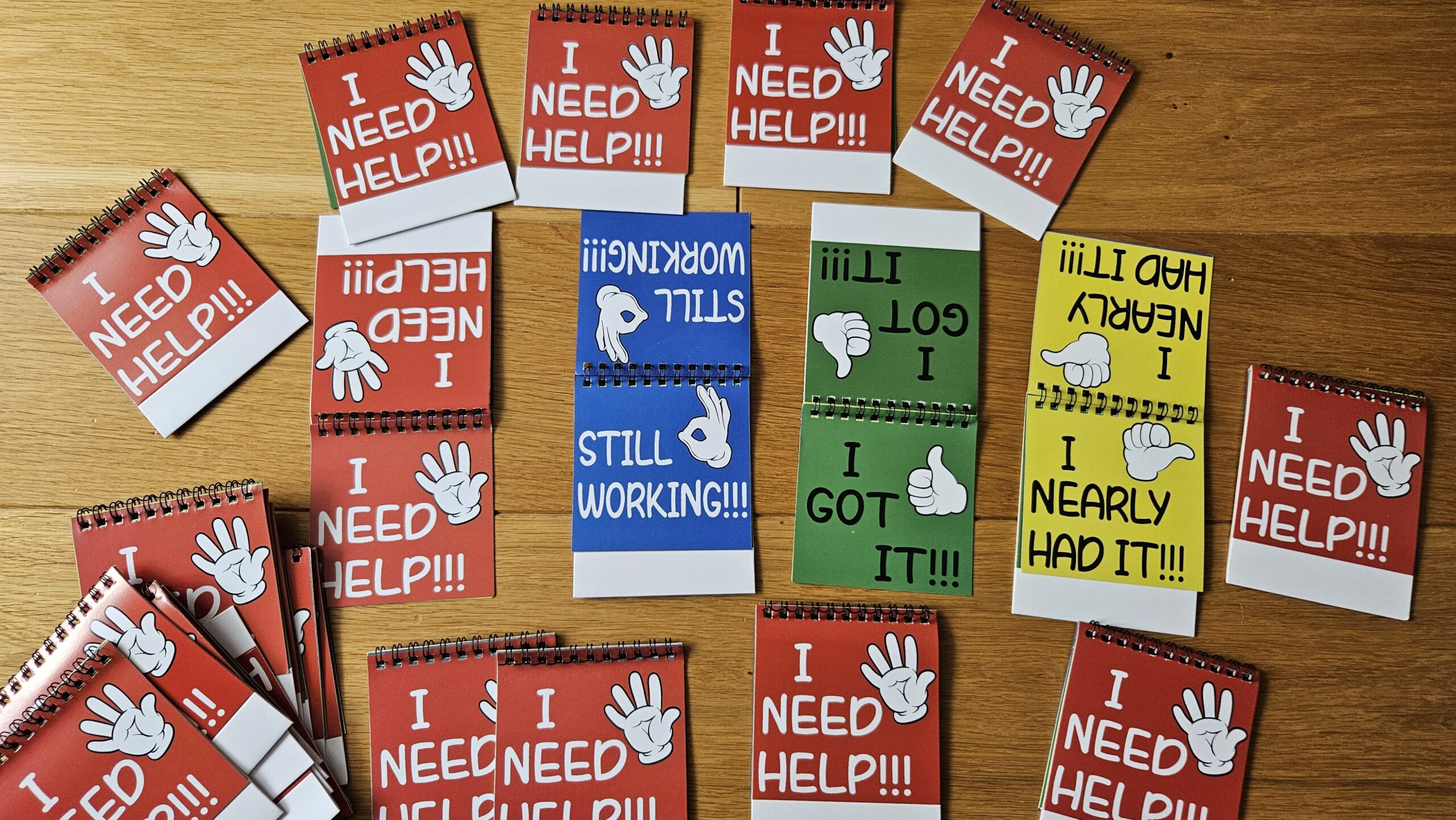 Super sprawa zwłaszcza dla tych nauczycieli, którzy lubią wiedzieć, na jakim etapie każdy poszczególny uczeń w danej chwili jest na lekcji. Fajny gadżet dla tych, którzy stosują ocenianie kształtujące. Książeczka na spirali, aby można było przekładać kartki. Książeczkę można postawić. Znajdziesz w niej następujące informacje: I need help, I got it/ I nearly had it/ Still working. Rewelacyjna sprawa również dla tcyh, którzy wstydzą się powiedzieć, że mają problem. W sklepie jest sporo sztuk, warto zakupić dla całej klasy.